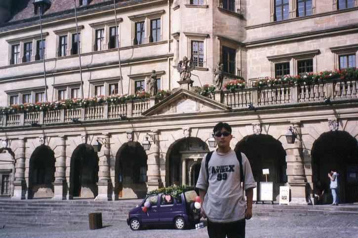 로맨틱 가도를 달려온 버스 여행을 마치고 12시 30분에 기대했던 로덴부르크에 도착했다. ‘중세의 성’ 모든 것이 신기하게 느껴진다. 성벽안의 모든 건물이 중세시대의 모습을 하고 있다고 한다. 영화에서나 보아왔던 집들이 마을을 이루고 있었다. 3층 이상의 건물은 성당뿐이였던걸로 기억한다. 다행이도 이번엔 비교적 수월하게 숙소를 찾을 수 있었다. 우리가 이틀 동안 머물게 될 숙소의 내부는 현대적인 시설을 갖추고 있지만 외관은 옛날의 모습을 보존하고 있었다. 이 성안에서는 부자연스러운 것은 우리 자신밖에 없었다.