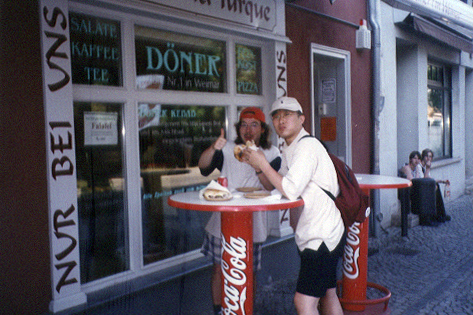 오후 4시경에 예정대로 근교의 Weimar라는 도시를 방문하게 되었다. 20세기 초 독일의 수도였고 히틀러가 애용하던 Elephant 호텔이 있는 도시라고 한다. 하지만 그 이외에는 그다지 큰 볼거리는 없는 것 같았다. 하지만 너무나 조용한 도시라는 점이 가장 마음에 들었다. 거리의 음악사들과 조용한 강가, 잠시나마 강가의 잔디밭에서 낮잠을 잘 수 도 있었다. 독일에 와서 처음으로 터키인이 운영하는 케밥집에 가서 케밥맛을 볼 수 있었다. 상당히 맛이 좋다. 이곳 저곳 거리를 돌아다니며 오랜만에 자유로운 시간을 보낼 수 있었다.