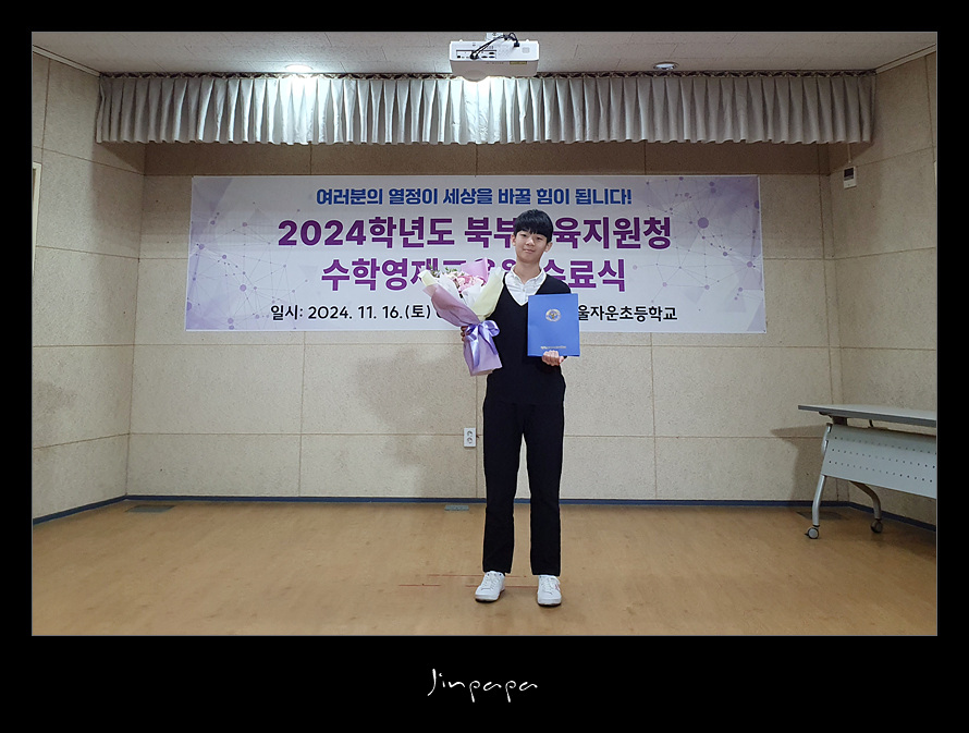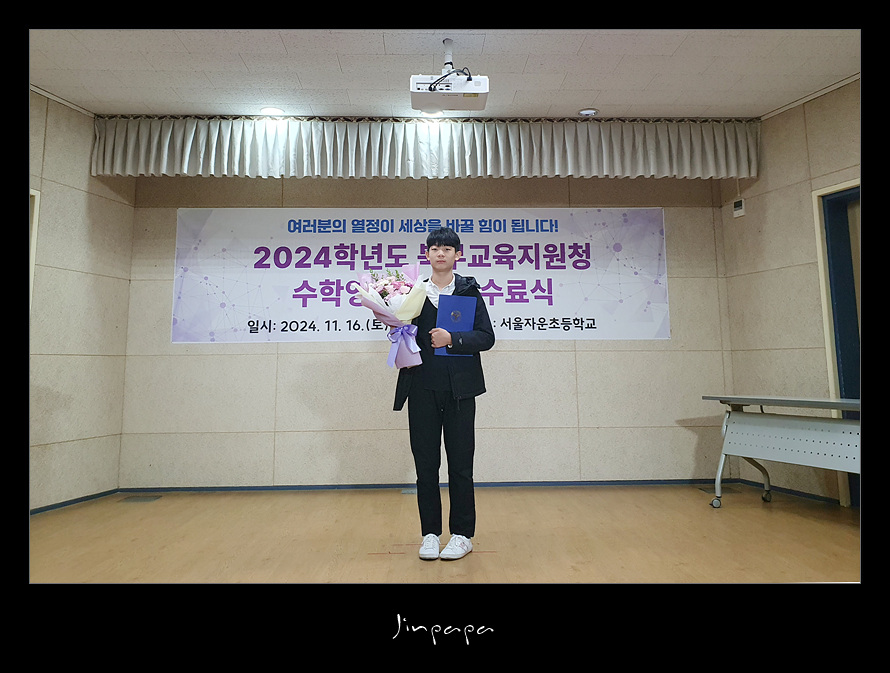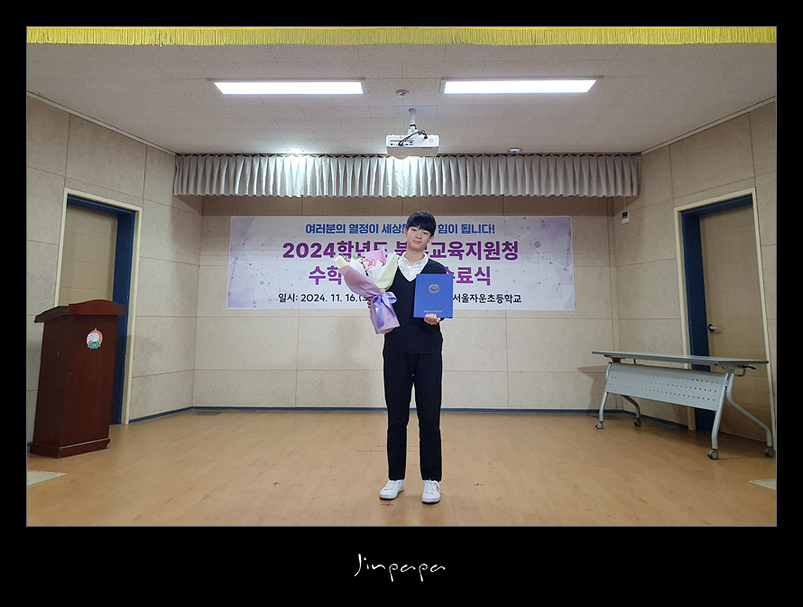 - Yeojin & SeoJin, - 행사 사진, 2024 ~서진 – 2024 영재교육원 수료식 2024년 11월 16일 2024.11.162024년 영재교육원 수료식 (자운초) Previous 강릉 - 영진해변 Newer 2024 겨울 강릉 #1 You May Also Like 프랑스 – Paris (2001.08.05) – Day 40 2001년 08월 05일 국립수목원 2020년 05월 02일 2014 제주여행(1일차) – 제주 가는길, 에코랜드 #1 2014년 09월 14일