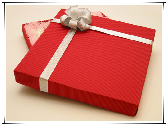 상자의 전체적인 모습입니다. 빨간색 골판지로 상자를 만들었네요… 리본색이랑 상자색이랑 잘 어울리죠~~