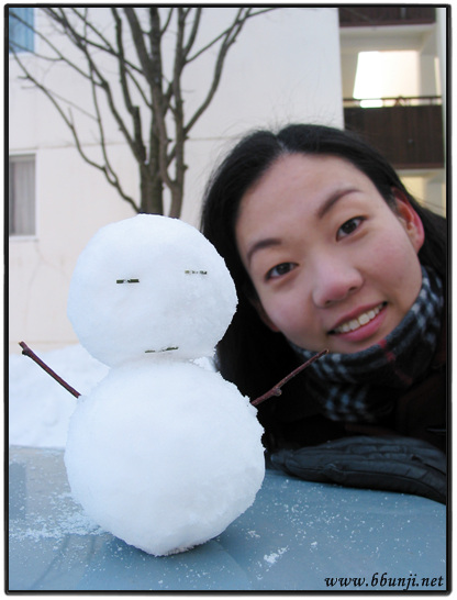눈이 잘 뭉쳐지질 않아서 크게는 못만들었습니다. ^^